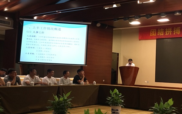 會議在副總經理周軍的主持下召開,分為各部門主管總結發言、副總經理章勇及總經理張布偉重要指示三個部分。